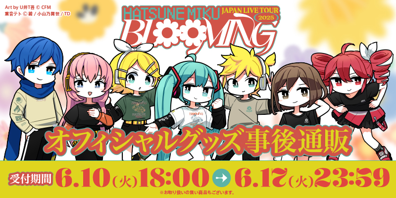 「初音ミク JAPAN LIVE TOUR 2025 ~BLOOMING~」オフィシャルグッズ事後通販は本日、6/10(火)18時より受付開始です!