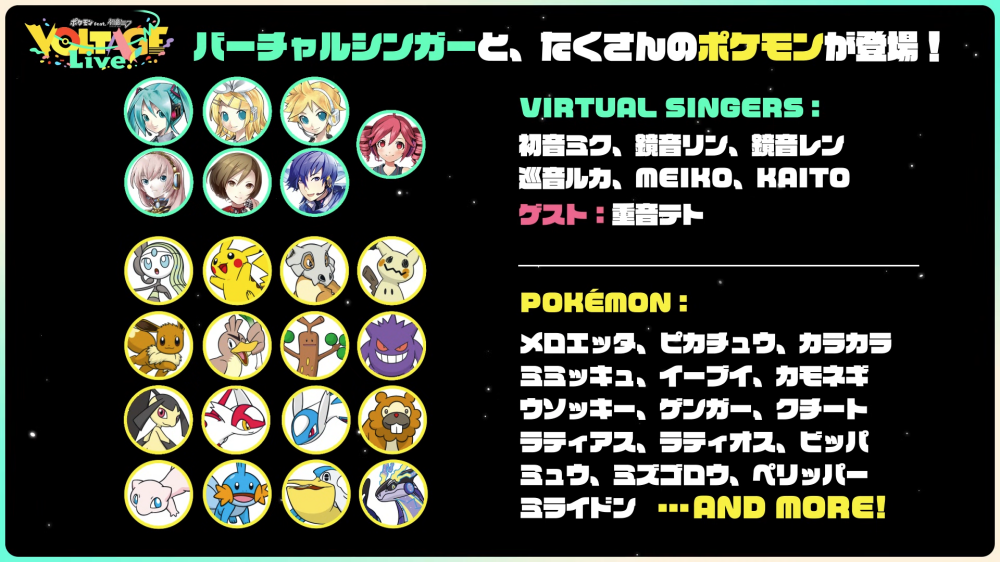 初音ミクたちバーチャルシンガーと、たくさんのポケモンたちが生き生きと動き回り、すべてのポケミク楽曲を披露するスペシャルなライブ!