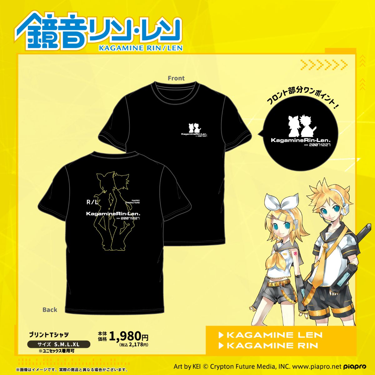 ◇「鏡音リン」「鏡音レン」プリント半袖Tシャツ