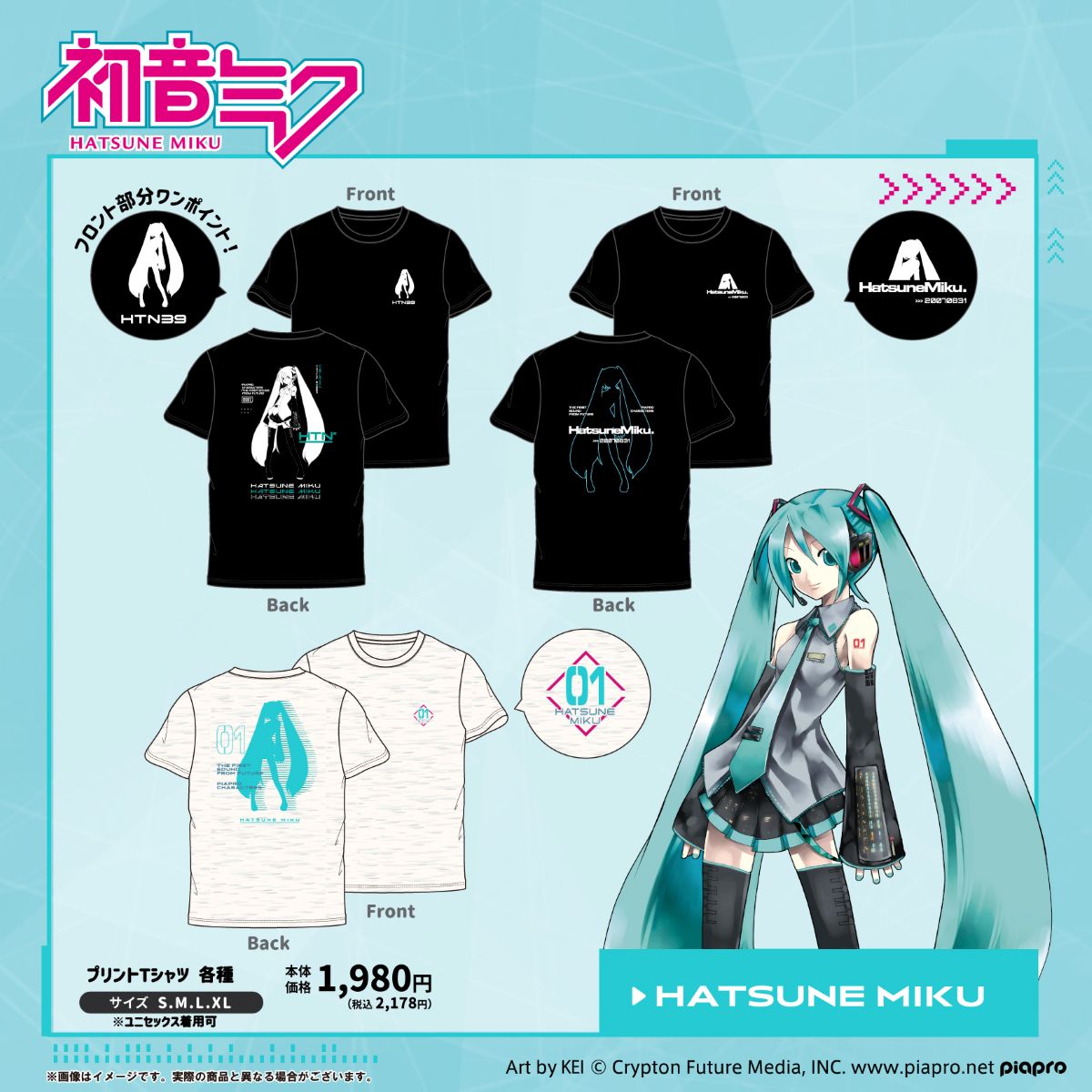 今回はシルエットや線画タッチ、バックプリントなど、様々な「初音ミク」プリントTシャツを展開!